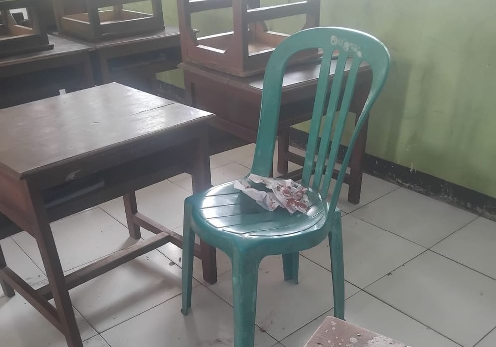 A kemudian berusaha menghapus darah tersebut menggunakan kertas yang disobek dari buku miliknya. Peristiwa ini langsung menarik perhatian siswa lain.