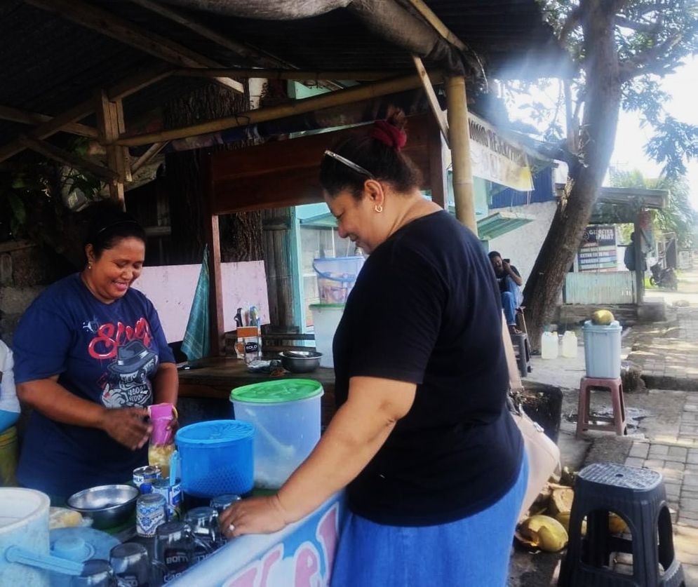 Bersama suami, Sindi sempat ikut tante ke Ende untuk berjualan es buah. Di sana, Sindi belajar melihat cara melayani pembeli, meracik minuman, dan memahami selera pasar.