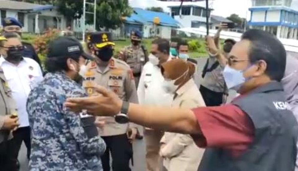 Menteri Sosial (Mensos) Tri Rismahartini dijemput Bupati Flores Timur Agustinus P. Boli Kaploda Pol. Lot Lotharia Latif saat tiba di Bandara Gewayantana Larantuka Flores Timur, Selasa (6/4). (Foto: video Metrotv.)