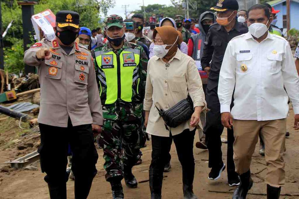 Menteri Sosial bersama rombongan pejabat pemerintah meninjau penanganan dampak bencana alam dan pelayanan pengungsi di wilayah tersebut.