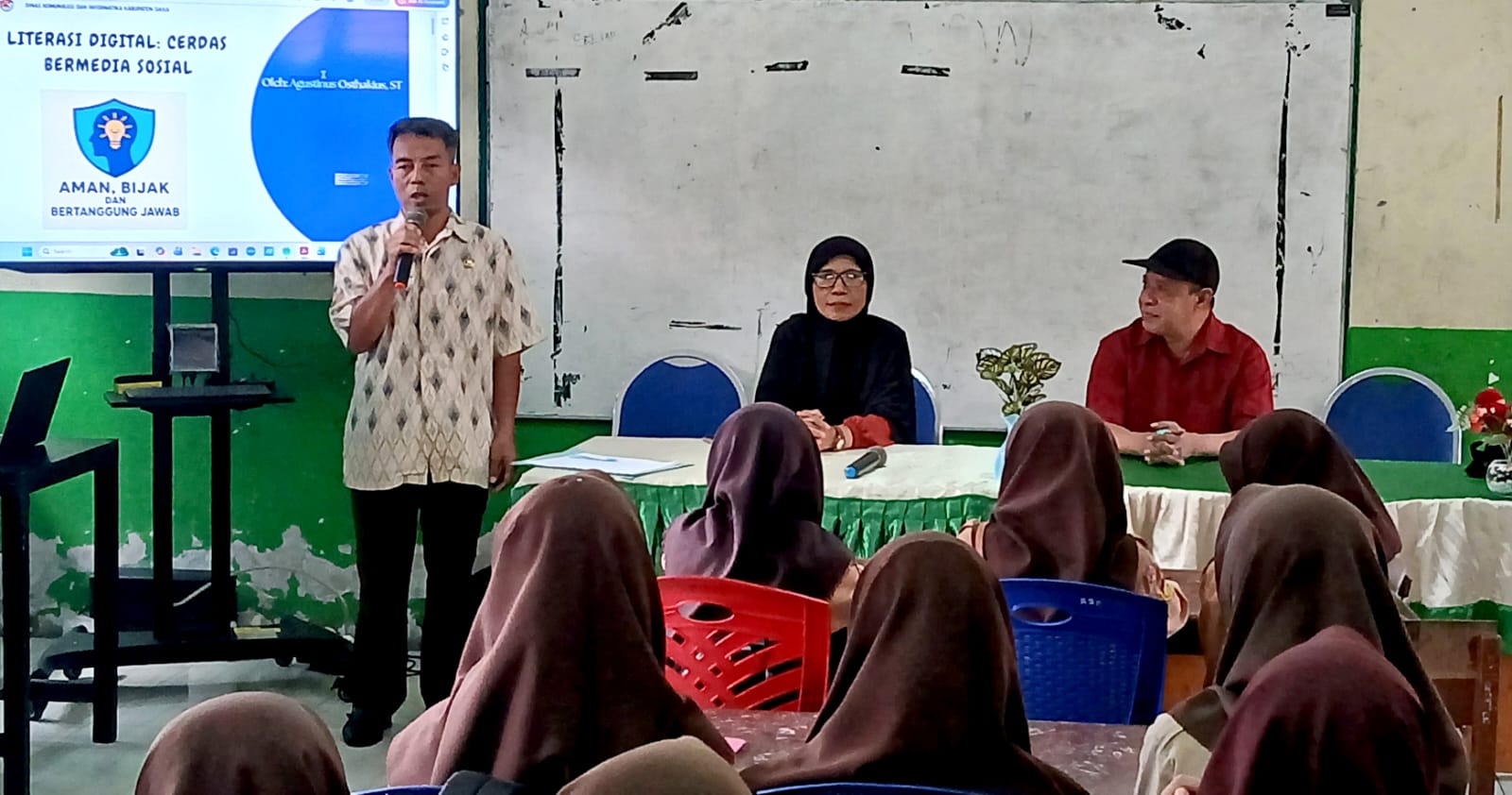 Ia juga mengingatkan para siswa untuk menerapkan prinsip netiket (netiquette) dalam berinteraksi di ruang digital. “Guys, perlu saring sebelum sharing informasi apa saja yang kita terima. Sabar sebelum sebar. Pikir sebelum bertindak,” pesannya.