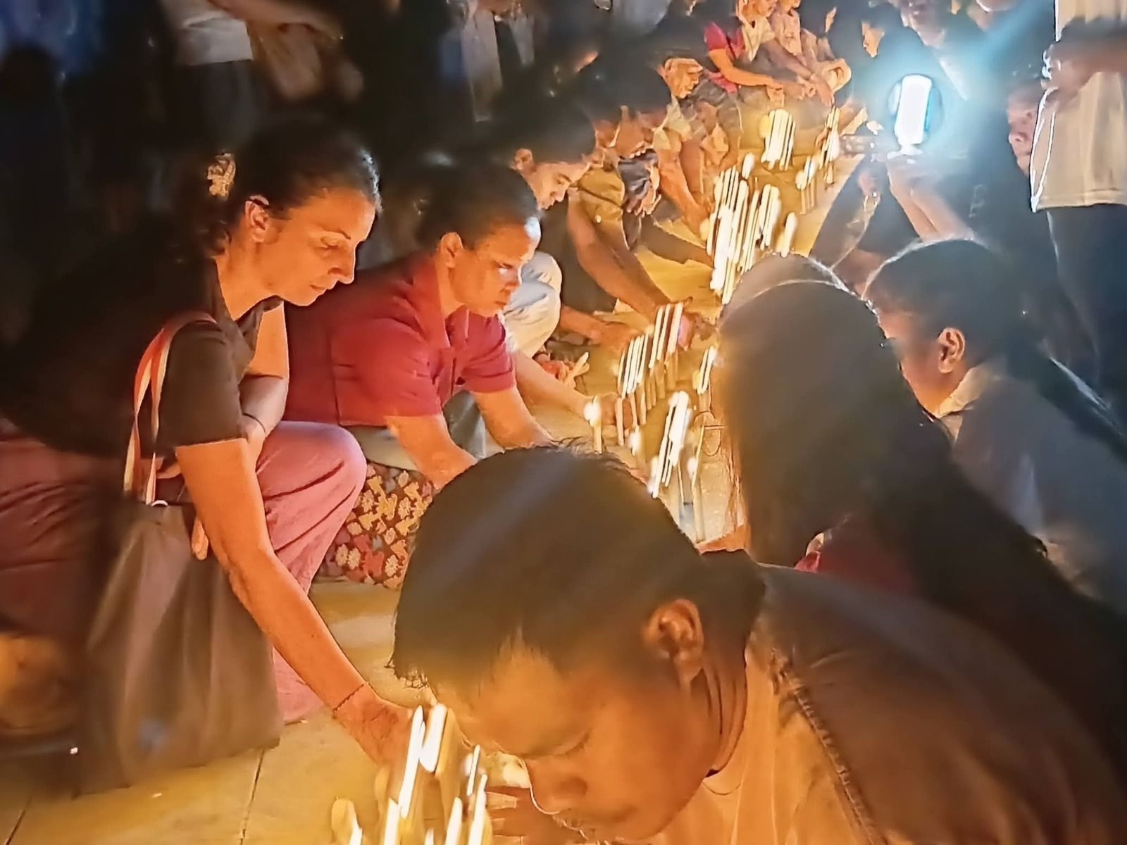 Istri Fernando Martin Carreras tampak hadir mengikuti doa bersama. Ribuan lilin yang menyala di tepi laut menjadi simbol cahaya di tengah kegelapan—harapan agar para korban segera ditemukan dan keluarga diberi ketabahan.